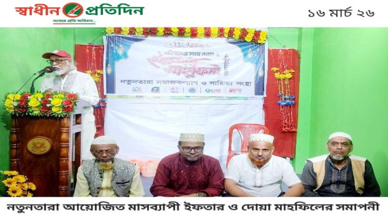 ২৬ রমজান, সোমবার (১৬ মার্চ ২০২৬) বিকাল ৫টায় খুলনার নতুনতারা ভবনে এই সমাপনী অনুষ্ঠান অনুষ্ঠিত হয়। নতুনতারা সমাজকল্যাণ ও সাহিত্য সংস্থার কেন্দ্রীয় চেয়ারম্যান মোঃ আশরাফুল আলমের ধন্যবাদ বক্তব্যের মাধ্যমে অনুষ্ঠানের শুভ সূচনা হয়।
